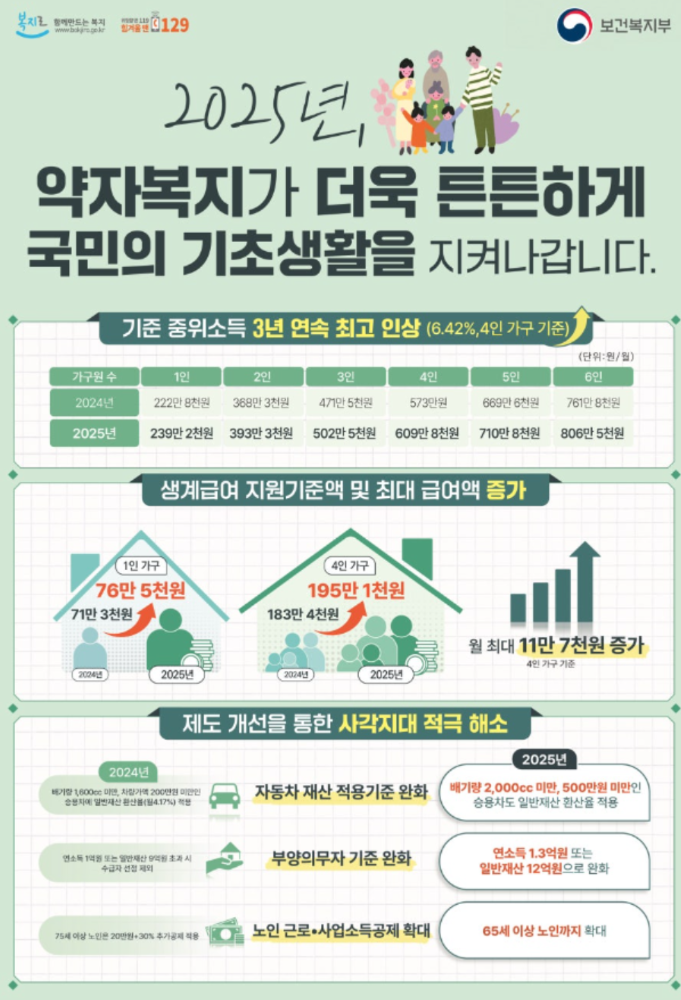 2025년 기초생활 수급비 인상 및 복지 제도 변화 안내