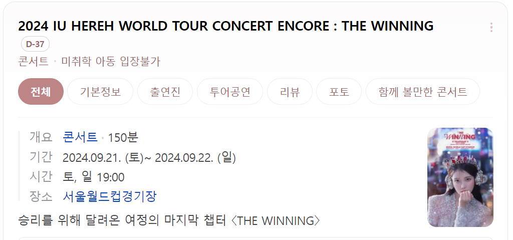 D-37 2024 IU HEREH WORLD TOUR CONCERT ENCORE : THE WINNING 아이유 9월 콘서트 티켓팅, 예매 가격, 좌석 정보, 일정 안내