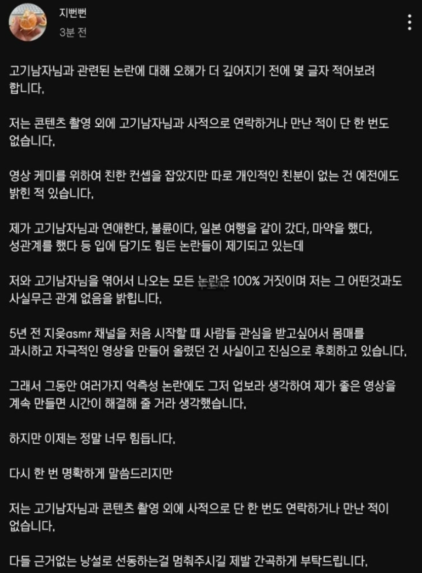 5. 지뻔뻔, 루머에 대한 해명과 진심 어린 호소