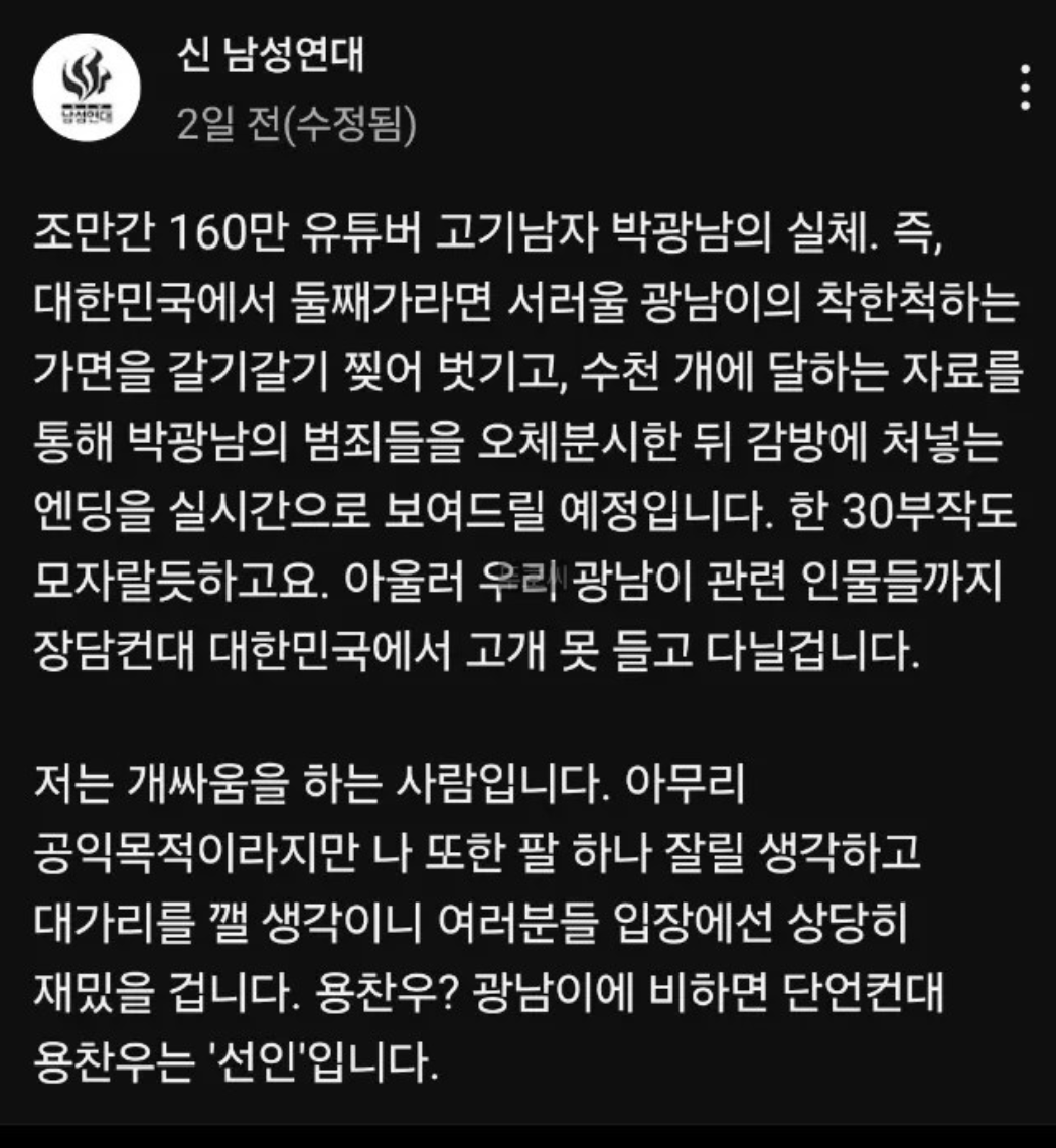 최근 유튜브에서 큰 화제를 모은 사건이 있습니다. 구독자 164만 명을 보유한 고기남자와 신남성연대의 배인규 대표 간의 갈등이 링 위에서의 '현피'로 이어졌습니다. 이번 사건은 단순한 개인 간의 싸움이 아니라, 여러 인물과의 관계 및 폭로가 얽혀 있는 복잡한 상황입니다. 이번 글에서는 사건의 전개와 관련된 주요 인물, 그리고 이로 인해 드러난 논란에 대해 자세히 살펴보겠습니다.