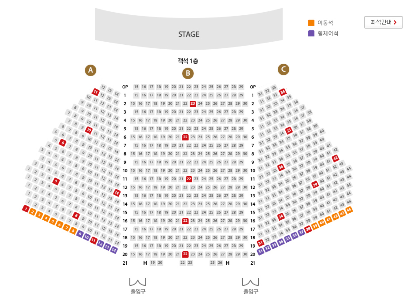 예매 가능한 좌석과 가격