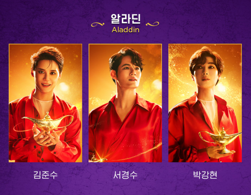 - 알라딘 역: 김준수, 서경수, 박강현