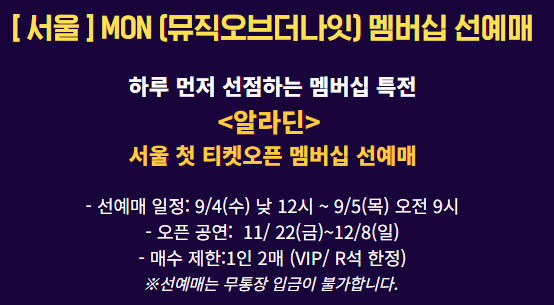 1. 뮤지컬 알라딘 티켓 예매 정보 📅