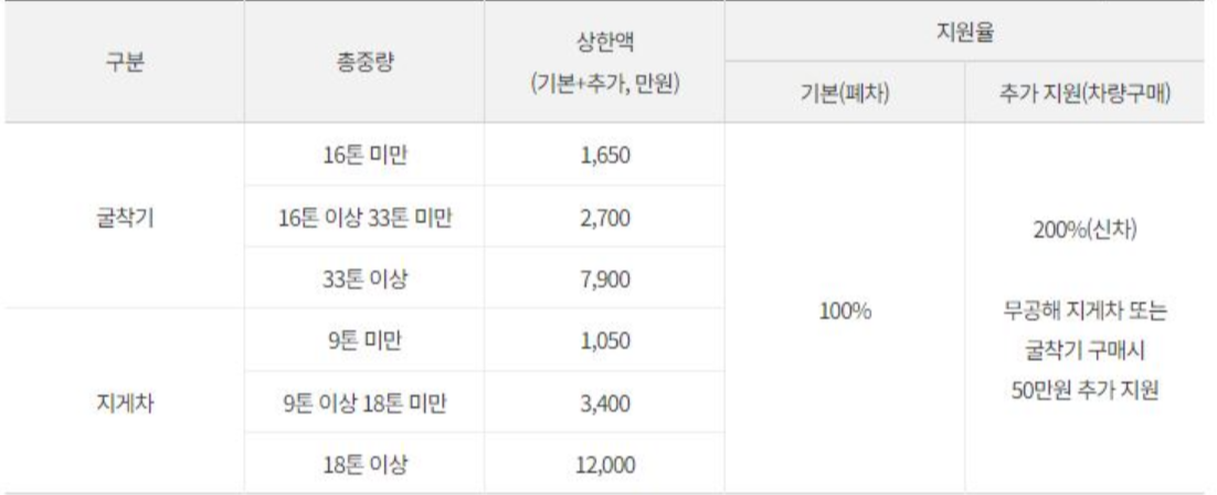 - 건설기계: 1,600만 원부터 1억 2천만 원까지 지원