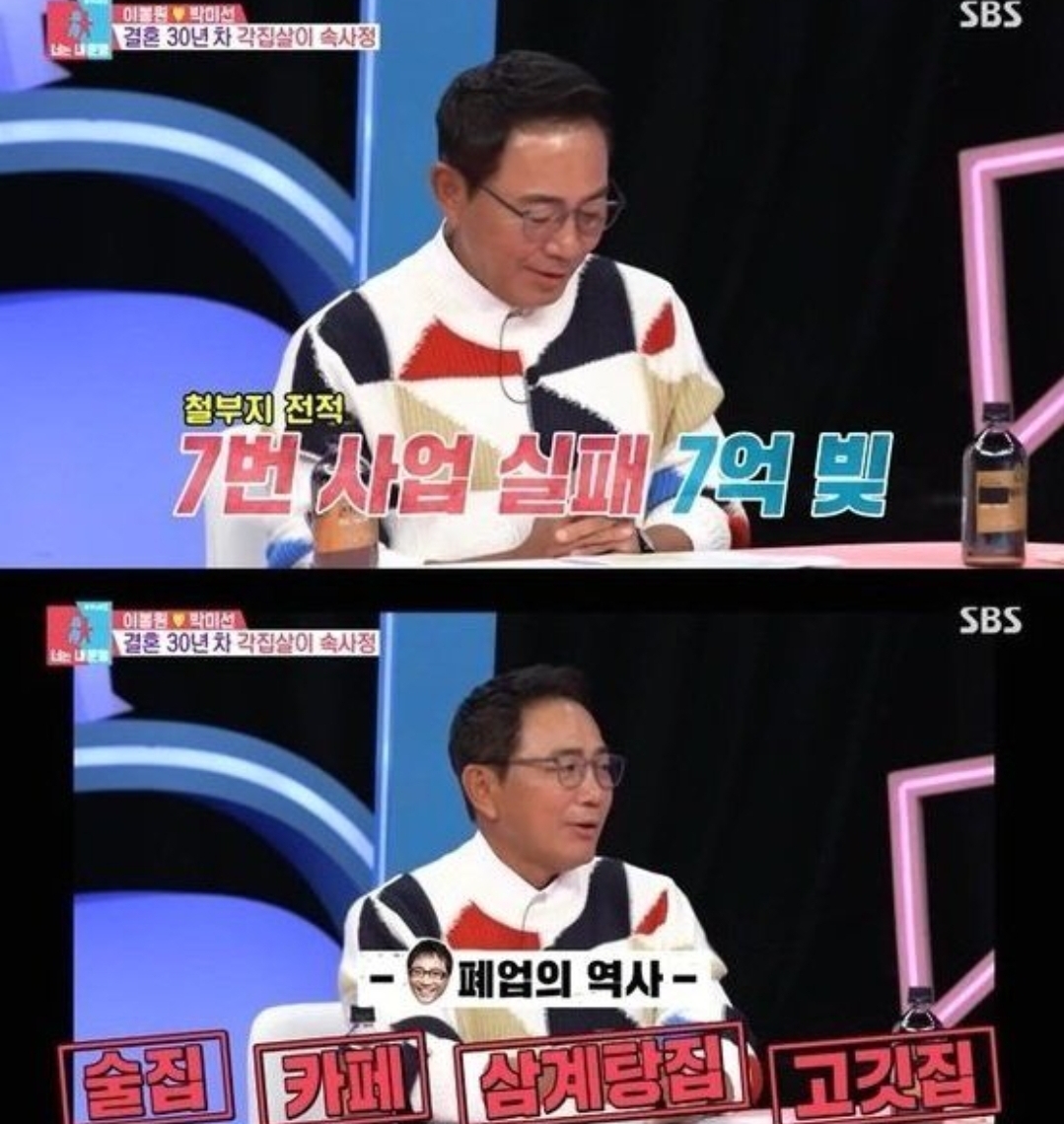이봉원의 인생은 순탄치만은 않았습니다. 2009년, 사업 확장을 위해 사채를 동원했으나 실패로 수십억 원의 빚을 지게 되었습니다. 이 시기에 아내 박미선은 남편을 위해 방송 활동에 매진하며 그를 지지했습니다. 박미선은 "다시 태어나도 이봉원과 결혼할 것"이라는 발언으로 변함없는 사랑을 보여주었습니다.