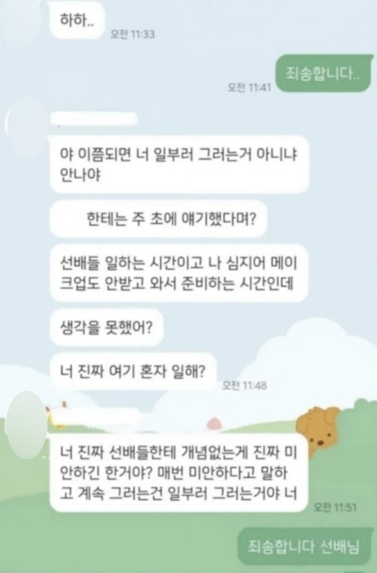 오요안나 충격적인 직장 내 괴롭힘 카톡공개