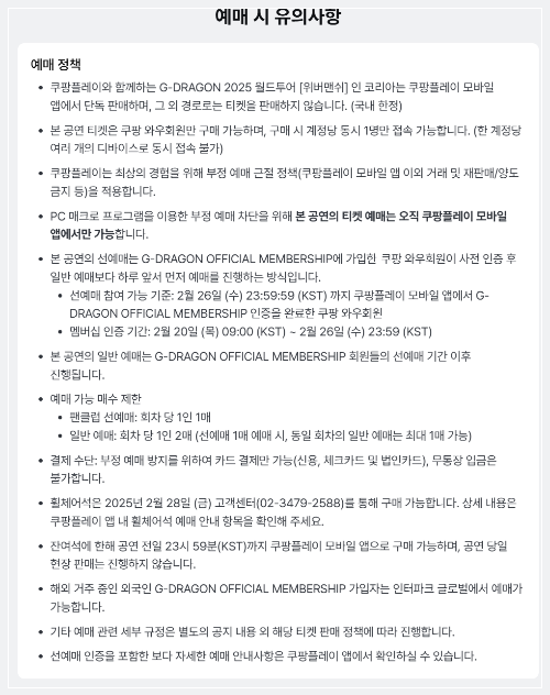 지드레곤 2025 콘서트 예매 총정리! ✅️ 쿠팡 와우회원 특전 및 예매 꿀팁