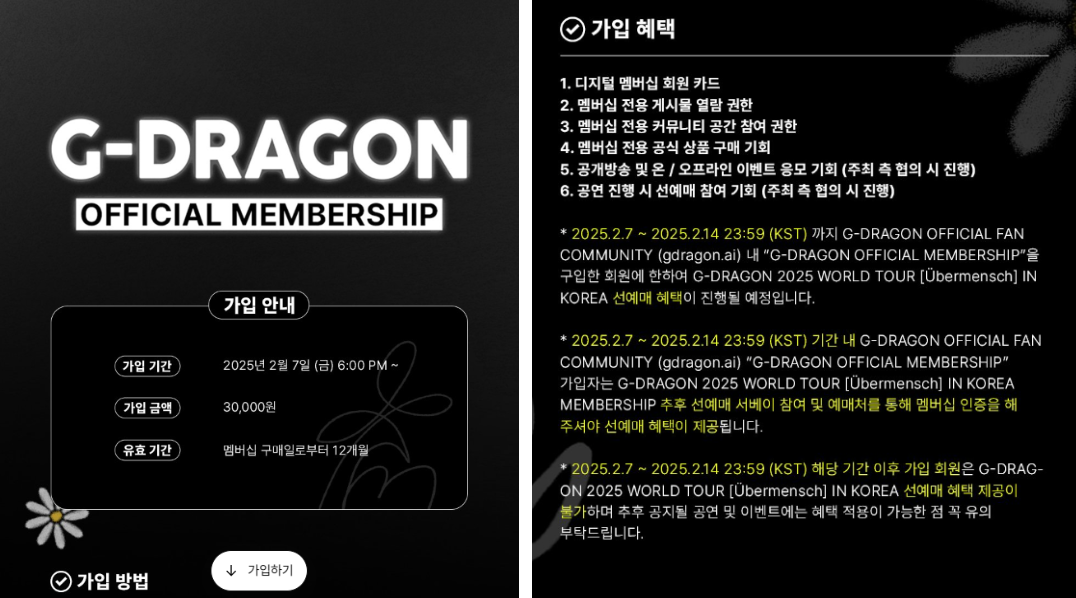 팬클럽 선예매 (G-DRAGON OFFICIAL MEMBERSHIP 한정)