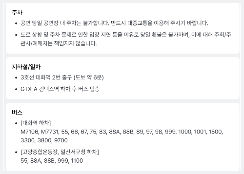 🚗 공연장 주차 불가 – 대중교통 이용 필수!