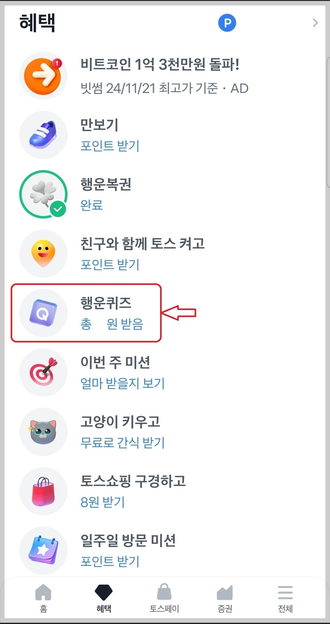토스 행운퀴즈 참여로 포인트 쌓기: 매일의 작은 기회