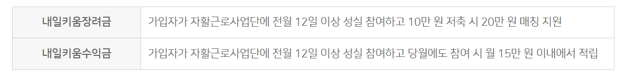 내일키움수익금: 12일 이상 참여 시 월 15만 원 이내 적립