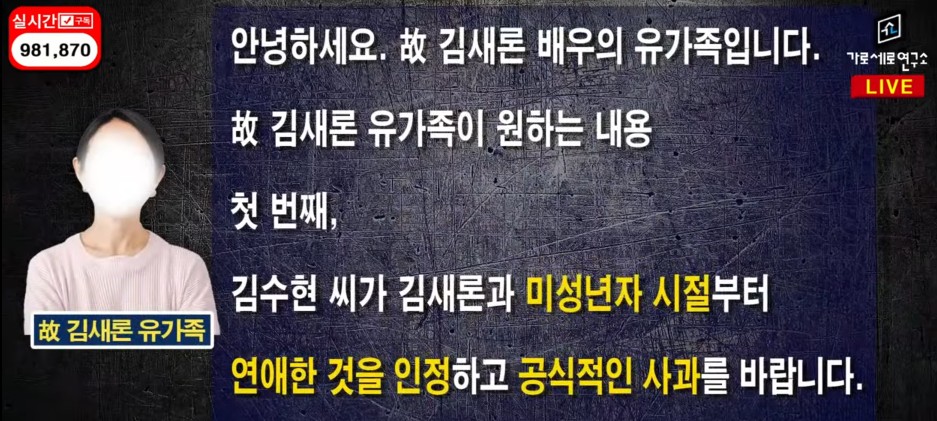 #김새론 #김수현 #골드메달리스트 #유족입장 #사과요구 #진실공방 #연애사실 #허위사실 #이진호 #논란 #연예계 #사회적이슈 #김새론사건