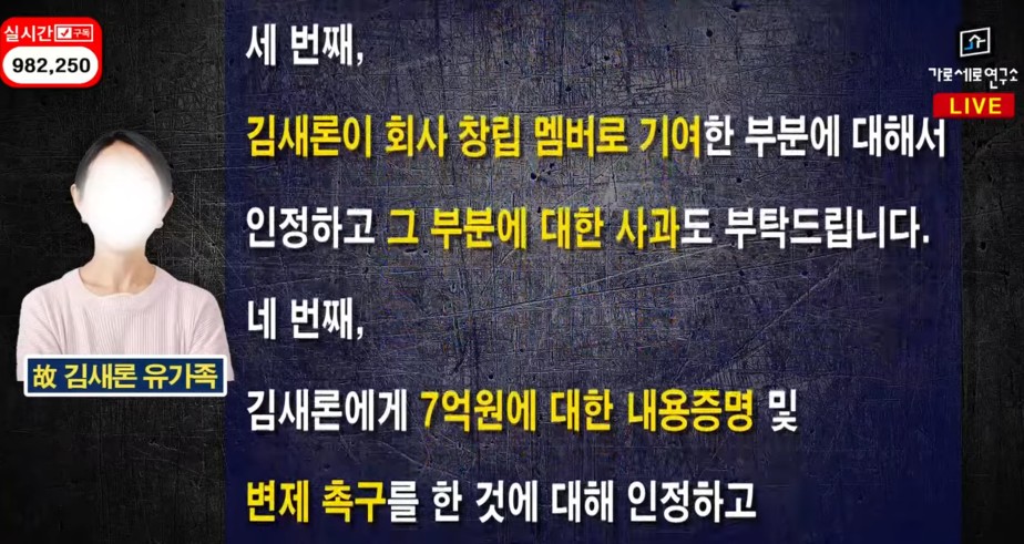 더불어 어머니는 "김새론에게 7억원에 대한 내용 증명과 변제 촉구를 한 것에 대해서도 사과를 원한다"고 덧붙이며, 유족은 김수현과 골드메달리스트의 공식 사과 외에는 더 이상 바라는 것이 없다고 분명히 밝혔습니다. 이는 김새론의 죽음 이후 발생한 여러 논란에 대한 유족의 심각한 입장을 반영한 것입니다.