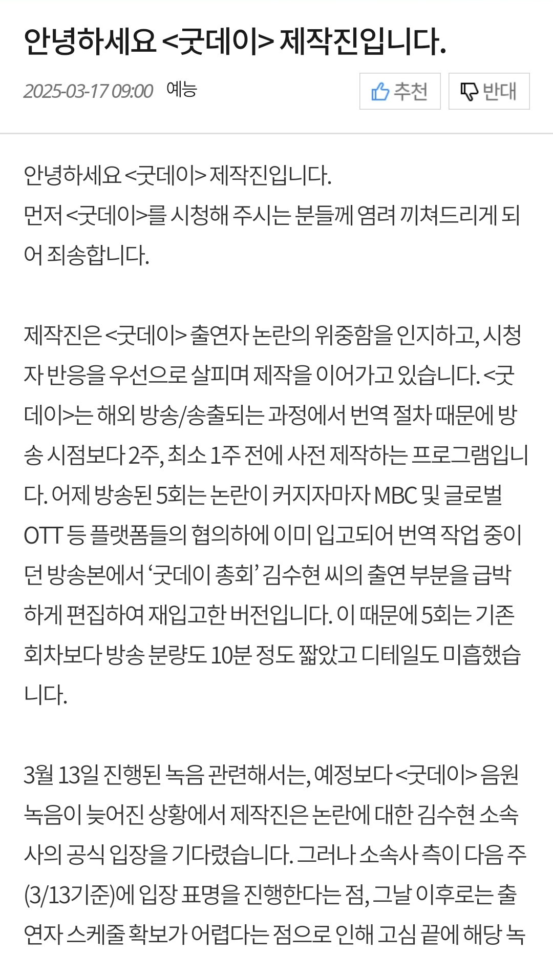 #김수현 #굿데이 #MBC예능 #논란 #편집결정 #방송사 #시청자반응 #연예인논란 #공식입장 #팬반응