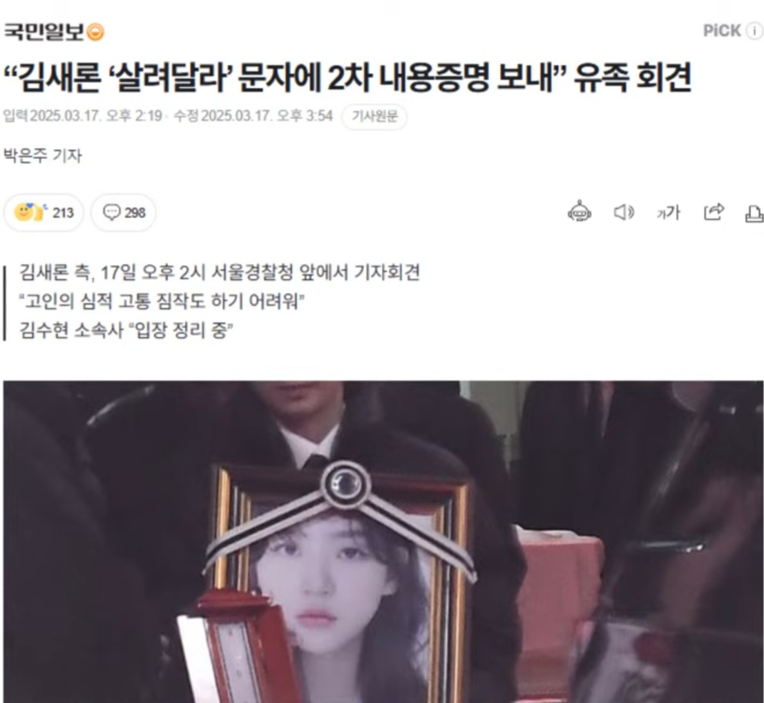 - “김새론이 ‘살려달라’고 했는데 내용증명을 보냈다고?”