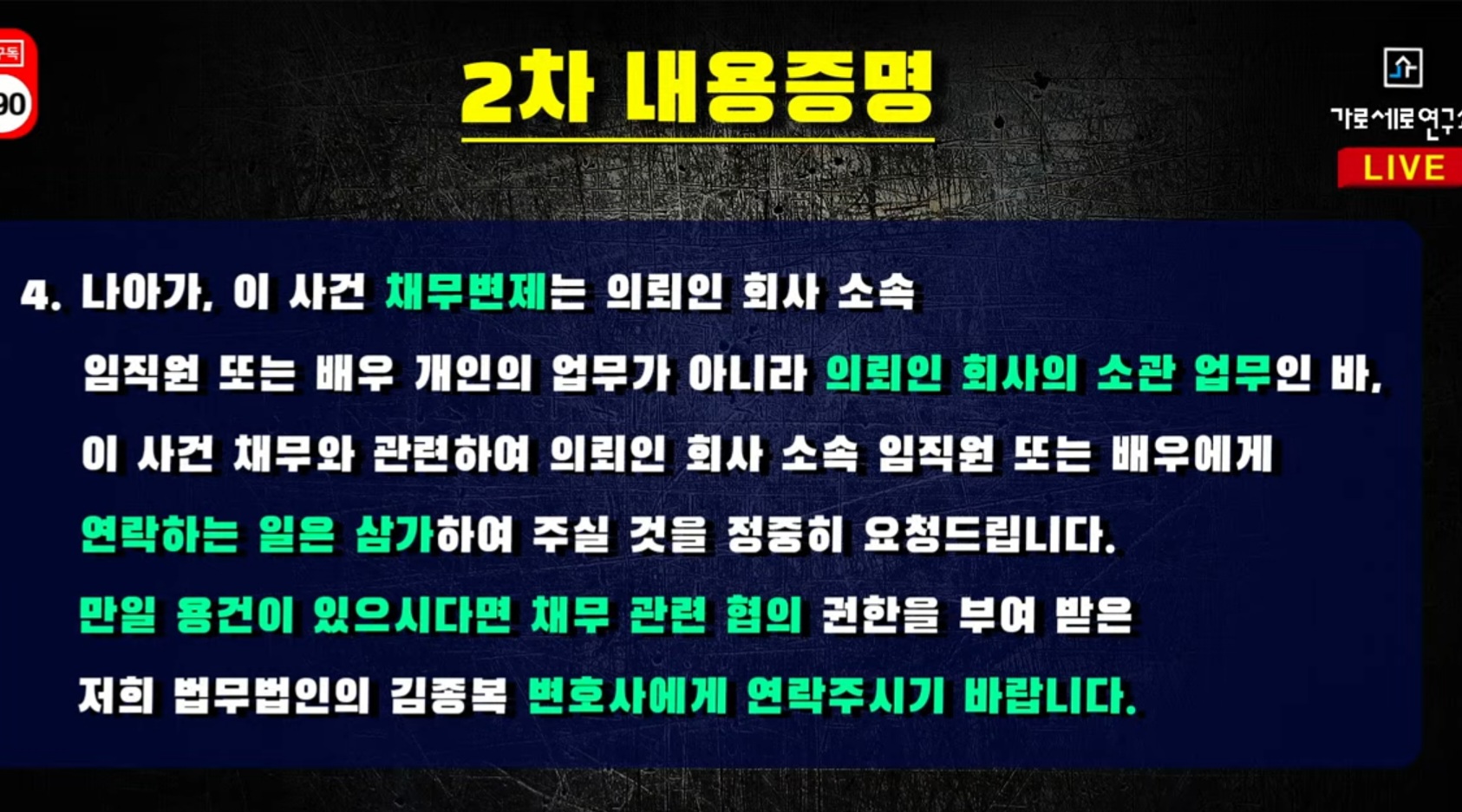 김새론의 유족은 고인의 유품을 정리하는 과정에서 김수현 소속사가 보낸 2차 내용증명을 발견했다고 밝혔습니다. 그 내용은 다음과 같습니다.