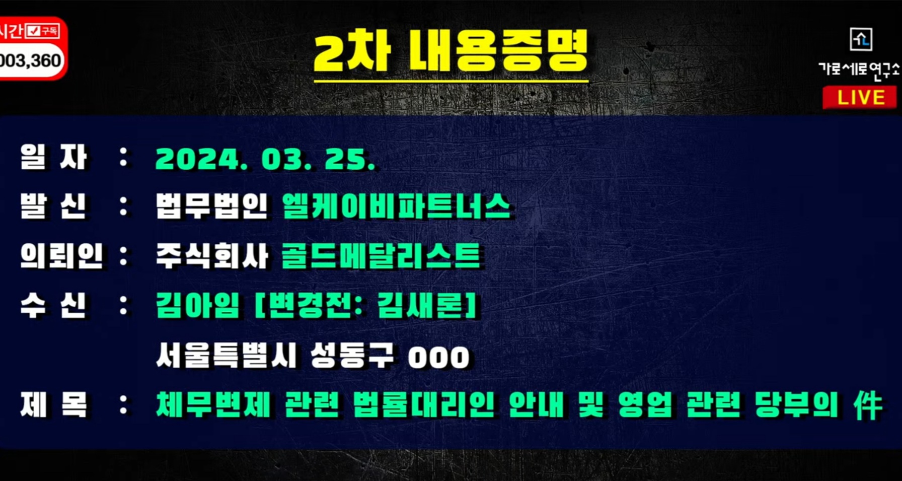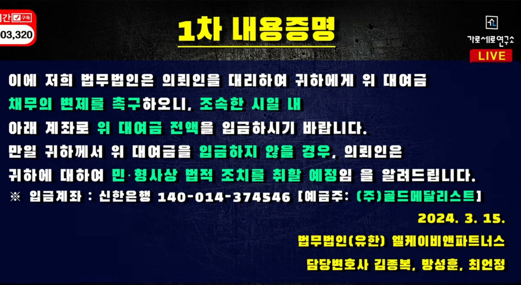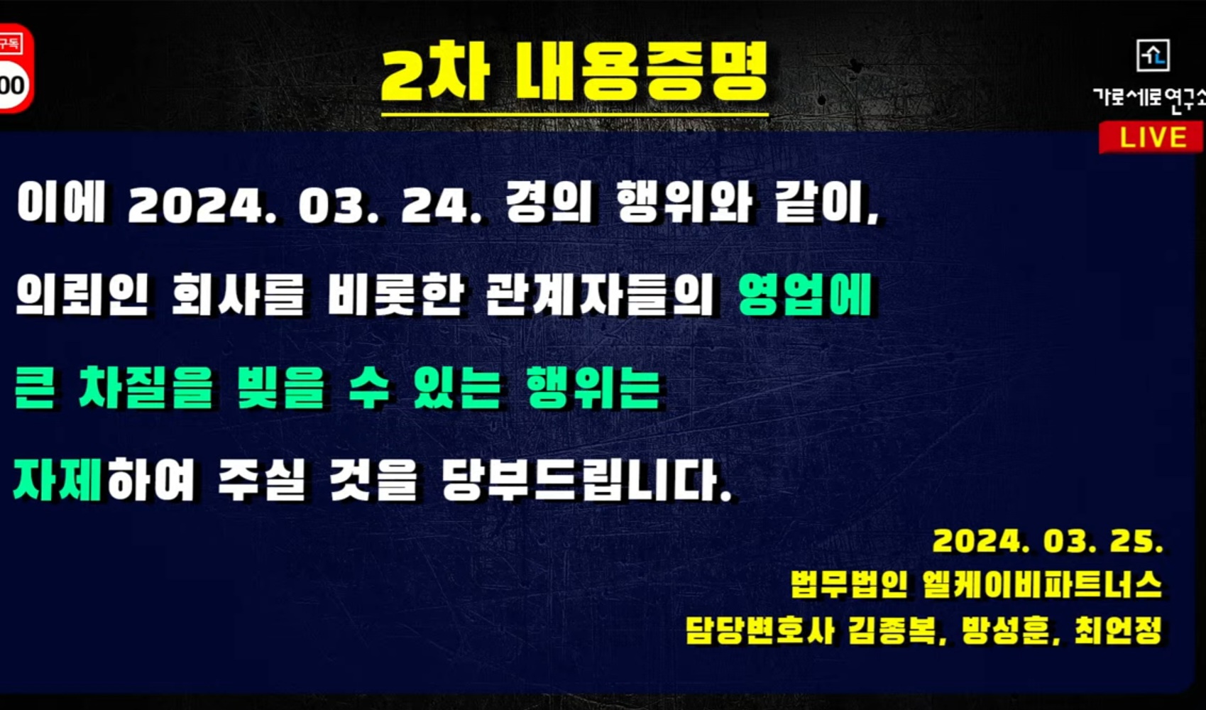 - “내용증명이 협박성이라면 정말 심각한 문제다.”