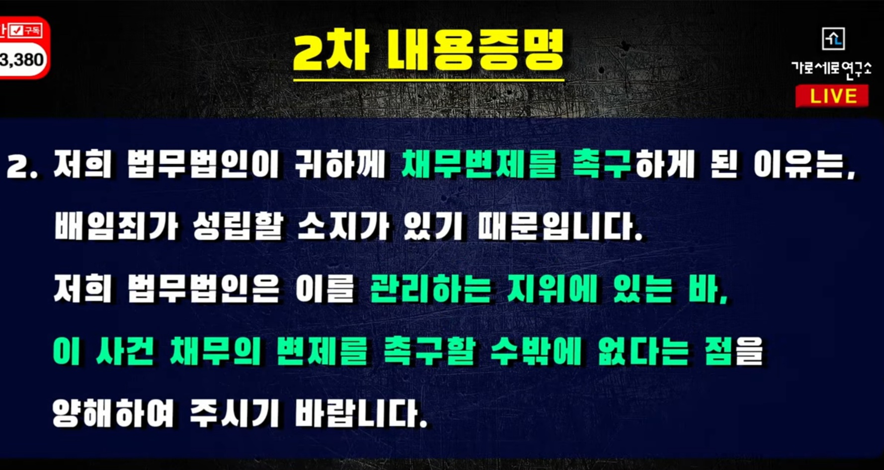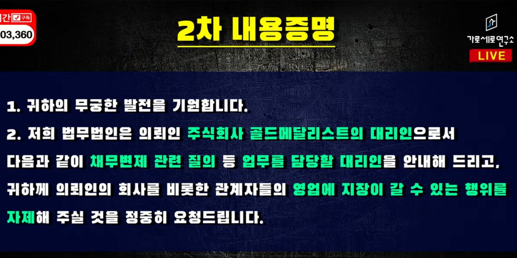 - “내용증명이 협박성이라면 정말 심각한 문제다.”