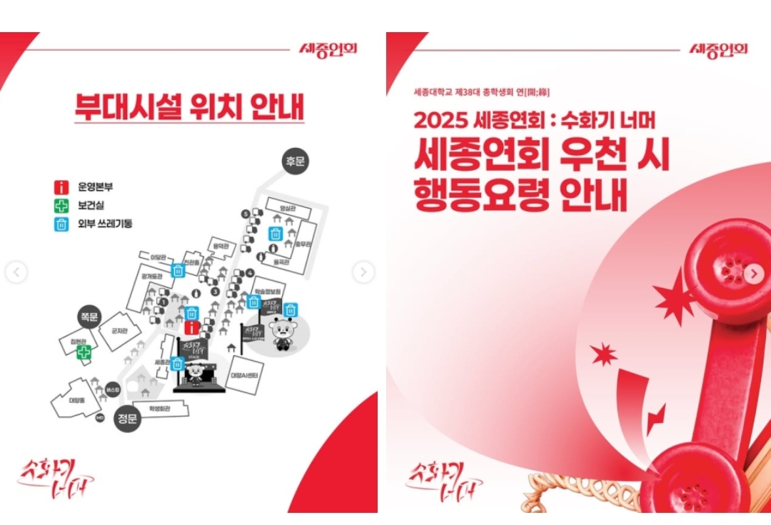 2025년 세종대학교 축제는 5월 14일 수요일부터 5월 16일 금요일까지, 총 3일간 진행됩니다. 장소는 서울에 있는 세종대학교 캠퍼스, 주로 대양AI센터와 운동장 일대에서 축제가 펼쳐질 예정이에요. 이번 축제의 주제는 '세종 연회, 수화기 넘어', 그리고 드레스코드는 레드 & 화이트라고 하니 맞춰 입고 가면 축제 분위기를 더 즐길 수 있겠죠? 포토존, 플리마켓, 푸드트럭 같은 다양한 즐길 거리도 준비된다고 합니다.