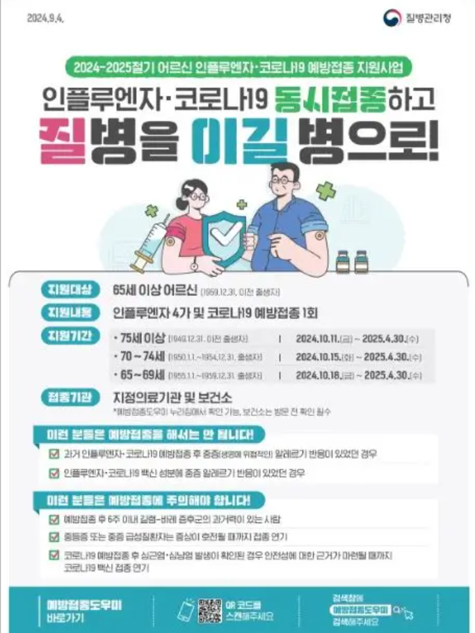 2024-25 절기 인플루엔자 예방접종 안내: 65세 이상 어르신 필수 접종!