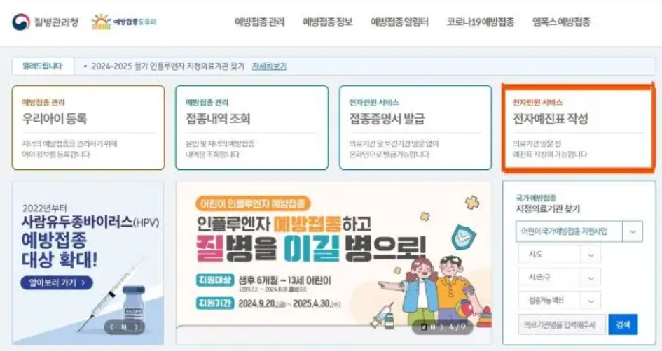 예방접종을 받기 전, 지정된 의료기관 및 보건소에서 백신 접종 가능 여부를 확인해야 합니다. 올해부터 도입된 '전자예진표'를 통해 집에서 간편하게 작성할 수 있으며, 이를 이용하면 대기 시간을 줄일 수 있습니다. 단, 접종 당일에 작성한 예진표만 효력이 발생하므로 반드시 방문하는 날에 작성하시기 바랍니다.