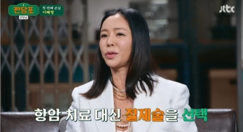이혜영 씨는 2021년 건강검진 중 폐암 초기 진단을 받고 폐 절제 수술을 받았습니다. 당시 MBN '돌싱글즈2' 촬영 중이었고, 결혼 10주년을 맞은 시점에 갑작스러운 암 진단을 받아 충격이 더욱 컸다고 고백했습니다. 이후에도 암 종양이 한 번 더 발견되어 수술대에 오르는 등 힘든 시간을 보냈습니다. 특히 아버지가 암으로 세상을 떠났고, 어머니 역시 같은 시기 암 진단을 받는 등 가족력이 있었기에 그녀에게는 '암 세상' 같았다고 표현할 정도로 시련이 컸습니다.