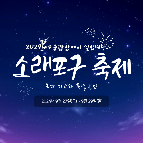 2024 소래포구 축제는 다양한 프로그램과 즐길 거리, 맛있는 음식을 한자리에서 경험할 수 있는 특별한 행사입니다. 가족, 친구, 연인과 함께 소래포구의 매력을 만끽하고, 잊지 못할 추억을 만들어 보세요. 많은 참여 부탁드립니다!