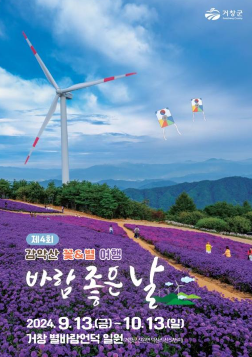 2024년 거창 감악산 아스타국화 축제가 거창 별바람언덕에서 열립니다. 다양한 국화꽃과 함께 버스킹, 마술쇼 등 풍성한 프로그램이 마련되어 있어, 국화의 아름다움과 함께 가을의 정취를 만끽할 수 있는 최적의 장소입니다. 여러분의 많은 참여 바랍니다!